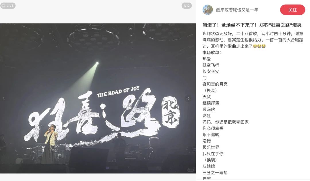 在嘲笑票房之前,我们先得搞清楚这次巡演郑钧都唱了点啥?