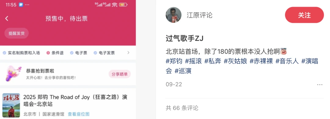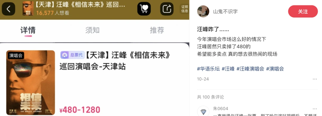 看看郑钧和汪峰,一个因票房压力被迫取消,一个在二级市场上打折促销。