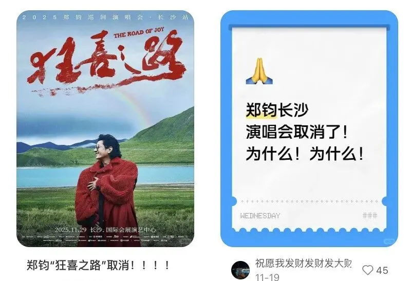 几天前,一纸冷冰冰的公告终结了郑钧“狂喜之路”长沙站的行程。