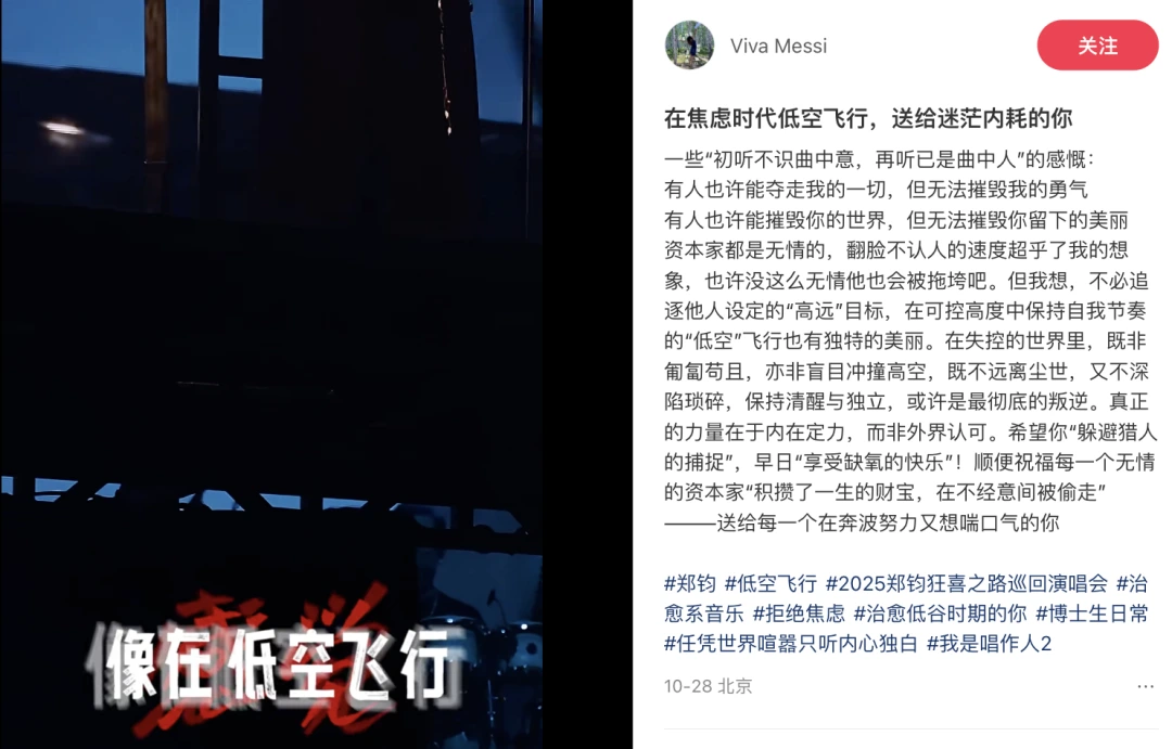 这句话,原本是说给他自己听的,但现在听起来,更像是说给郑钧、说给汪峰、说给所有还在死磕的老炮们听的。