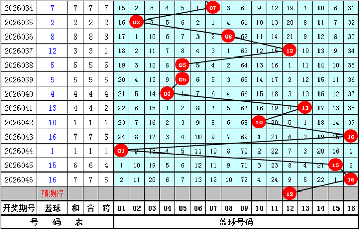 蓝球分析:上期蓝球落在第四区号码16,最近50期四区蓝球落号个数比为16:11:11:12,一区蓝球出现较多,本期预计蓝球出现在第三区,精选蓝球12。